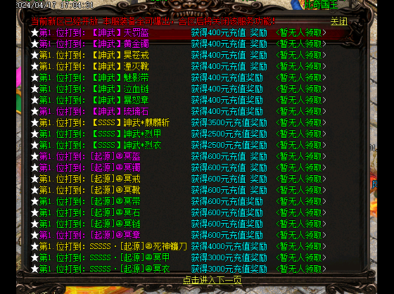 每天6个新区,发布站广告全覆盖,保证人气,第三天合区攻城,奖励丰厚!