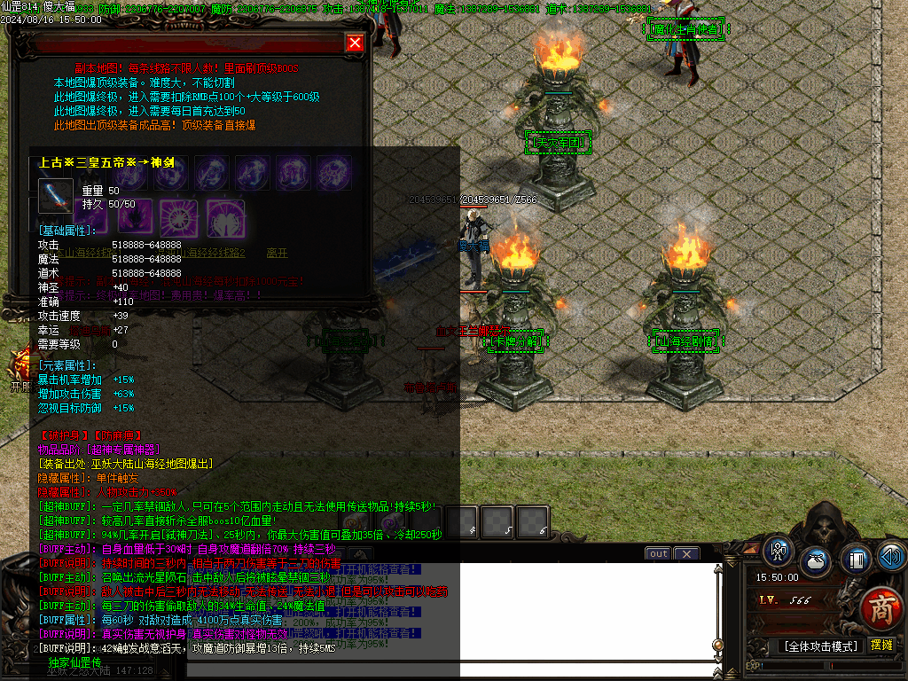 每个地图怪物BOSS都有可能掉落出终极装备,一切看脸。